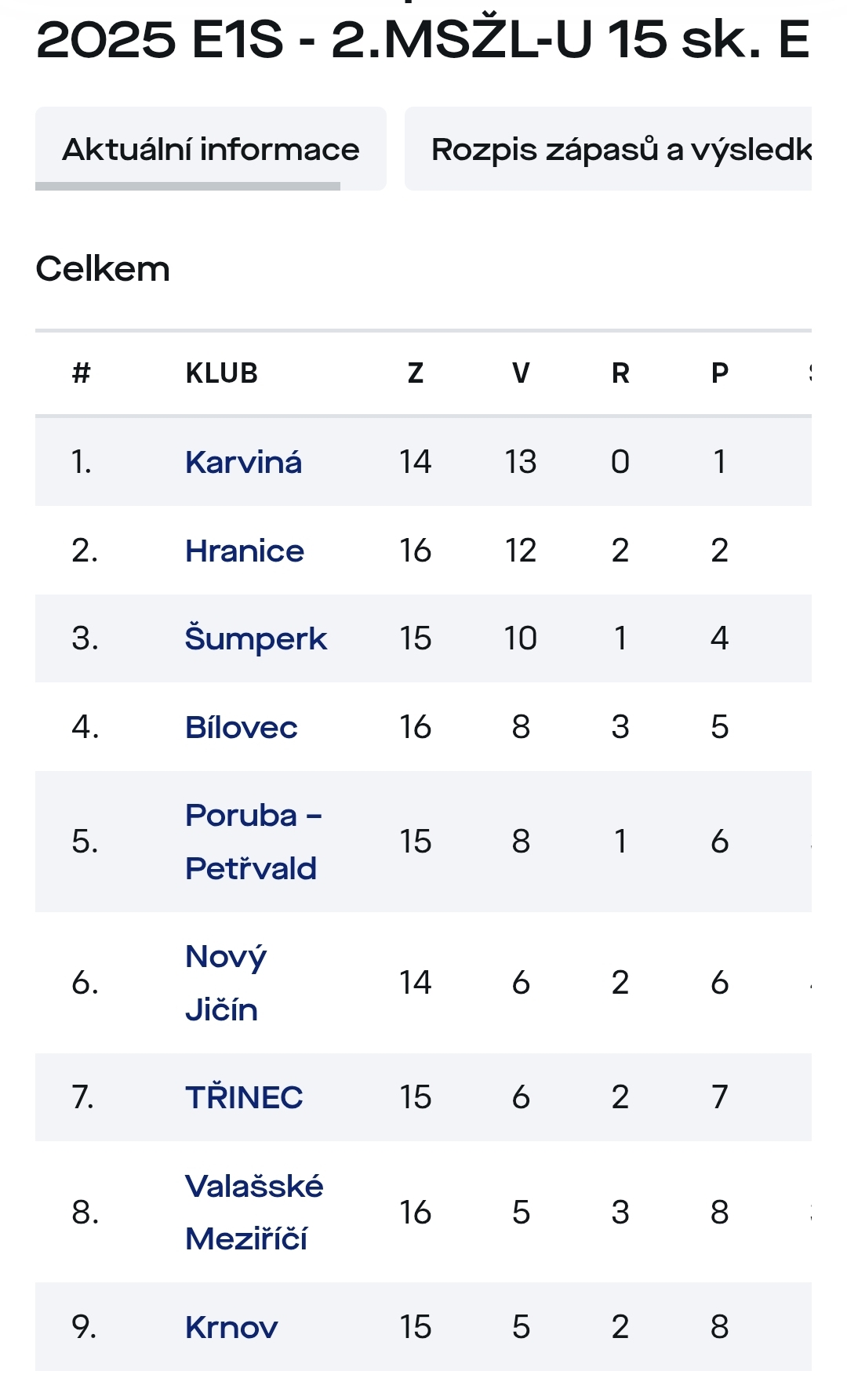 Zimujeme stejně jako vloni na 2. místě tabulky.